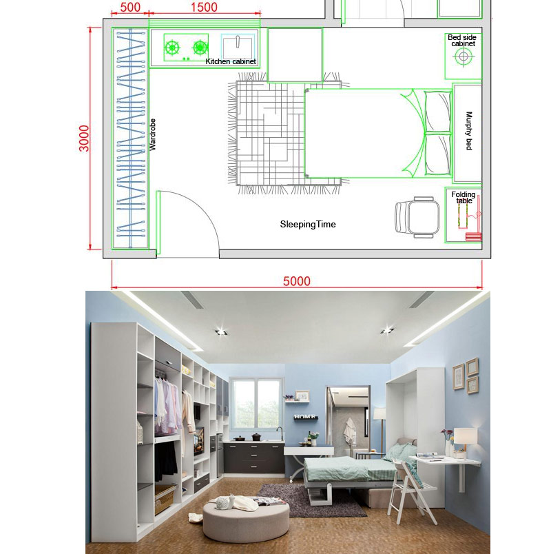 Murphy bed wardrobe with kitchen cabinet for India customer-sleeping time