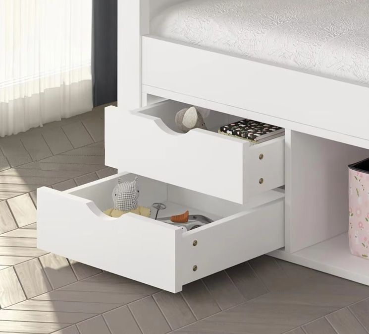 Modern Design Solid Wood Children Bed with Easy-Pullout Drawers Beautiful Panel Style Kids Beds