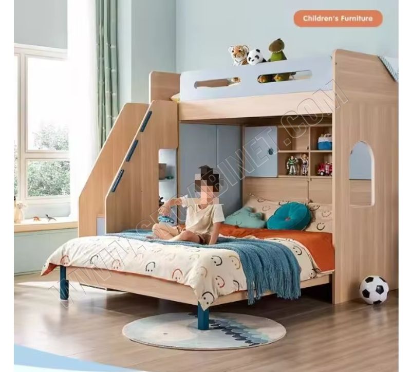Children's Integrated Furniture Offset Type Mother-Child Bed with Double-Layered Ladder Cabinet for Bedroom Use